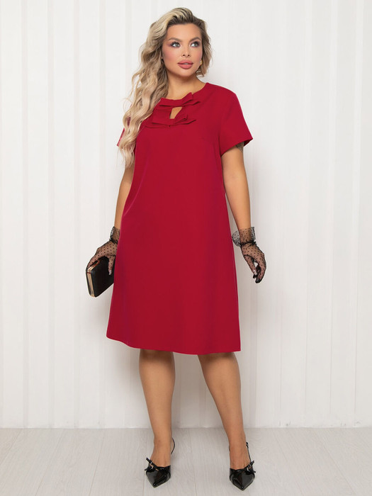 Элегантное платье А-силуэта из ткани насыщенного красного цвета.