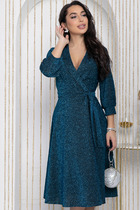 Эффектное платье футляр прямого силуэта с дизайнерскими рукавами и съемной брошью ручной работы. Платье на основе цельнокроеного покроя полуприлегающего силуэта с округлым вырезом выполнено из крешованной тафты с бархатными вплетениями, вертикальные полоски вытягивают силуэт и заужают фигуру. Перед оформлен нагрудными вытачками и украшен съемной брошью. Брошь цветок выполнена вручную из нежного шелк атласа с матовым блеском. Спинка со средним швом и талиевыми вытачками. Застежка на потайную молнию в среднем шве спинки, по низу разрез. Рукав на основе кимоно , с притачной деталью со встречными складками .