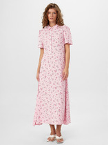 Платье с фигурным вырезом горловины по переду и стойкой по спинке. По талии съёмный пояс из основной ткани. Изделие со складками от кокетки по переду и спинке. Перед с декоративными пуговицами в верхней части и средним швом. Спинка с разрезом в среднем шве. Рукава втачные, со сборкой по окату и складкой с пуговицами в нижней части.