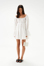 центральная потайная застежка на петли и пуговицы до талии. По спинке отрезная кокетка и сборки от кокетки. К платью прилагается пояс.