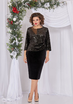 Платье полуприлегающего силуэта, отрезное по талии. Рукав втачной, по низу рукава манжета с застежкой на петли и пуговицы. Воротник рубашечного кроя, по переду