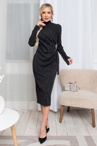Невероятно красивое платье, выполненное из трикотажа с характерной бархатистой текстурой и блеском, который привлекает внимание и выделяет свою обладательницу. Верхняя часть платья выполнена в стиле «летучая мышь», что обеспечивает комфорт и свободу в движениях, а облегающая юбка прекрасно подчеркивает фигуру, создавая эффектный силуэт. По талии вшита резинка. V-образная горловина придает образу утонченности. Юбка дополнена стильным разрезом по переду, что позволяет свободно двигаться и добавляет нотку соблазнительности. В комплекте с платьем идет пояс из основной ткани, который помогает акцентировать талию и завершает общий гармоничный образ.