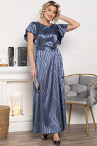 Это элегантное платье А-силуэта отличается плавностью линий и создает эффект легкости и воздушности. Макси-длина придает образу женственность и утонченность, подчеркивая фигуру, но сохраняя комфорт и свободу движений. Рукава-крылышки добавляют нотку игривости и романтики, идеально дополняя общий дизайн платья. Оно станет прекрасным выбором для особых случаев, торжественных мероприятий или романтического вечера. В комплекте пояс из основной ткани.