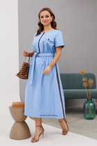 Платье зауженное к низу с декоративными швами и карманами в рельефах. Воротник-стойка с планкой. Рукав спущенный с имитацией манжеты.