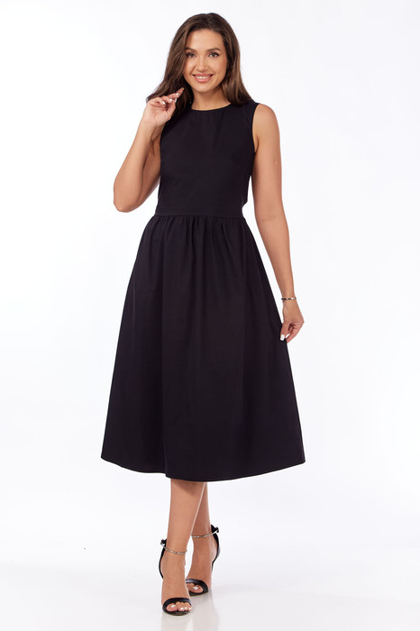 Летнее платье длины миди оригинального кроя. Изделие выполнено из натуральной хлопковой ткани. Лиф и спинка отрезные. Вырез горловины по переду круглый, по спинке — завязка из обтачных деталей спинки. Спинка открытая. Платье без рукава, низ платья — притачная юбка со сборкой, по спинке на резинке. Имеется два кармана в боковых швах. Платье может сочетаться как с кедами, босоножками, так и туфлями. Данная модель отличное решение для будней и для торжеств. Длина платья 123 (± 1 см). Изделие подойдет на рост 170 см.