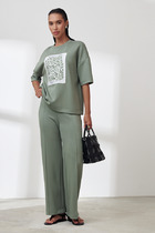 Горловина оформлена обтачкой, застежка на петлю-пуговицу.