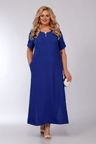 Платье полуприлегающего силуэта. Перед с нагрудными вытачками. Спинка со средним швом, заканчивающимся шлицей. Рукава втачные одношовные. Горловина обработана бейкой из основной ткани. Дополняет модель пояс.