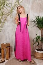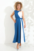 Платье женское приталенного силуэта, отрезное по линии талии. По лифу переда и спинки расположены рельефы. Юбка расклешенная с разрезом по переду. Застежка на потайную тесьму-молнию в среднем шве. Дополнительной застежкой служит шнуровка корсетного типа по спинке. Рукава съемные, держатся на резинке.