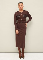 Платье свободного силуэта с подрезом ниже линии бедер. Перед с кокеткой. Горловина обработана рюшей и завязками. Рукав одношовный, заканчивающийся манжетой на венгерке. По окату рукава сборка. Платье на подкладке. Дополняет модель пояс.