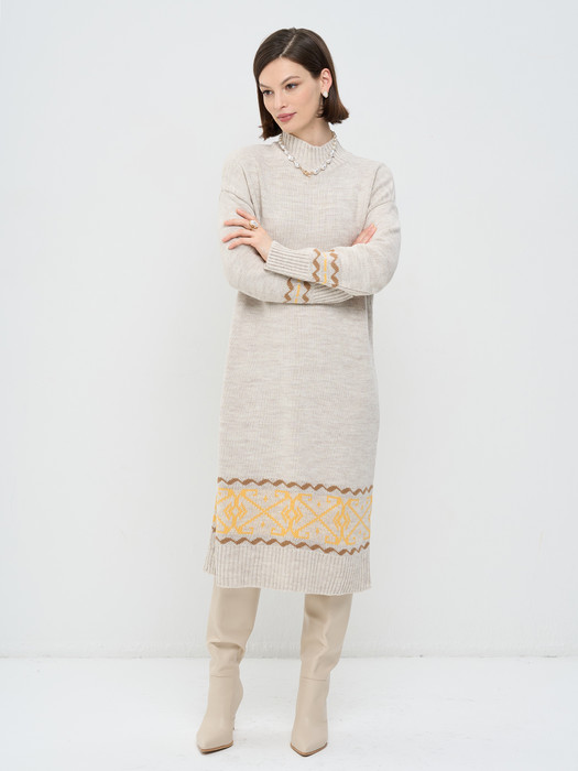 Платье NewVay 9242-92035 св.бежевый/форзиция/ карамельный кофе