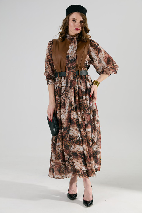 Платье NIKVA н1010-1 шоколад и тигровая абстракция