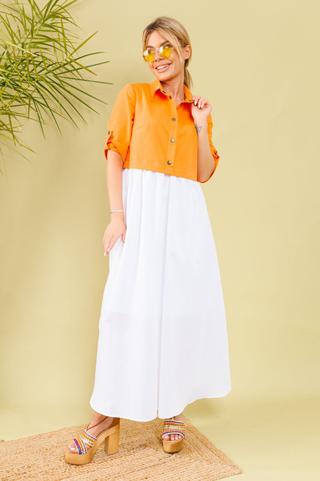 Платье NIKVA н365-1 мандарин+молоко