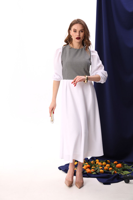 Совместные покупки Челябинск Женская одежда Платья — Платье NIKVA н416-8 белый+чёрно-белая гус лапка