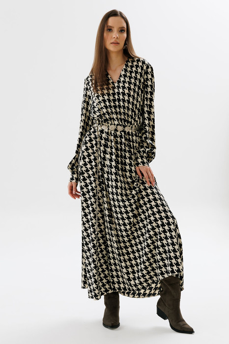 Платье NIKVA н560-2 чёрный+чёрно-беж гусиная лапка