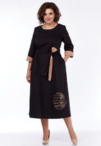 Воздумное платье трапециевидного силуэта отрезное ниже линии талии. Застежка центральная с отрезными планками на петли и пуговицы. Перед и спинка с притачными кокетками. Верхние срезы переда и спинки по линии соединены с кокеткой и собраны на сборку. Рукав втачной, одношовный. Нижний срез рукава со сборкой и разрезом, обработан притачной манжетой. Разрез рукава обработан обтачкой.