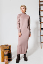 Элегантное платье свободного прямого силуэта длиной миди. Рукав реглан. Воротник-стойка. По переду фигурная настрочная кулиса. В боковых швах расположены карманы.