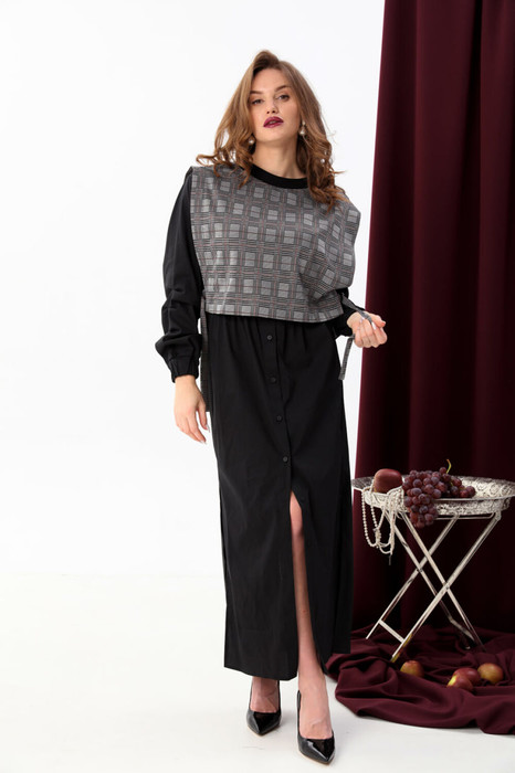 Совместные покупки Челябинск Женская одежда Платья — Платье NIKVA н942-1 чёрный+серая клетка