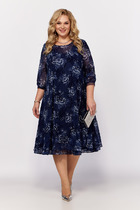 Комплект состоит из двух платьев: верхнего и нижнего. Платье верхнее свободного объёма, расклешенное к низу, с цельнокроеным рукавом, длиной макси. По переду и спинке, на линии талии настрочена кулиска для регулировки объема и формирования сборки с помощью шнура. Рукав цельнокроеный короткий с углубленной проймой. Плечевой шов дополнен кулиской для формирования сборки с помощью шнура. Шнур выведен наружу со стороны низа рукава. Вырез горловины имеет круглую форму, обработан обтачкой. Нижнее платье комбинация на регулируемых бретелях.