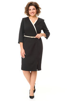 Платье женское, прямого силуэта, расширенное к низу, выполнено из трикотажного полотна. Платье женское прямого силуэта, длиной по среднему шву спинки 124 см, от шва втачивания воротника. Перед платья с нагрудными вытачками из проймы. Спинка со средним швом. В боковых швах обработаны карманы и разрезы. Воротник рубашечного типа, по переду планка «поло». Рукав втачной, одношовный, длиной 60 см. Платье без подкладки.