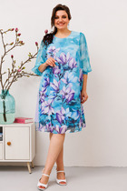 Платье женское, прямого силуэта, расширенное к низу, выполнено из трикотажного полотна. Платье женское прямого силуэта, длиной по среднему шву спинки 124 см, от шва втачивания воротника. Перед платья с нагрудными вытачками из проймы. Спинка со средним швом. В боковых швах обработаны карманы и разрезы. Воротник рубашечного типа, по переду планка «поло». Рукав втачной, одношовный, длиной 57 см. Платье без подкладки.