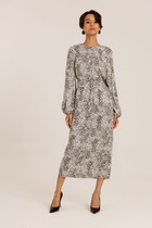 Благодаря полуприлегающему силуэту и трикотажной подкладке, модель обеспечивает идеальную посадку на фигуре и комфорт на протяжении всего вечера.