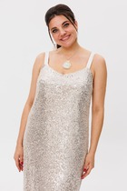 Элегантное платье полуприлегающего силуэта с втачным рукавом, отрезное по талии. Нижнее платье на бретелях.