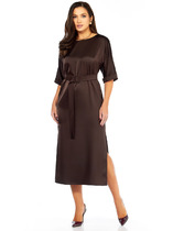 Платье прямого покроя. Модель сочетает в себе женственность и удобство. Перед декорирован дизайнерской вышивкой. Горловина переда декорирована планкой. По спинке платья складка, декорированная молнией.