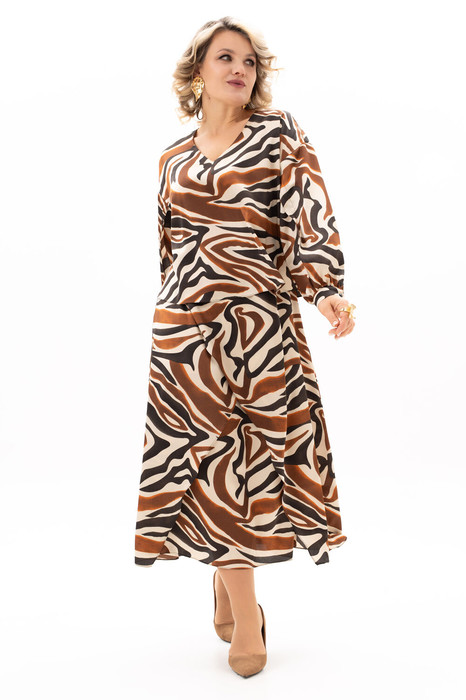 Представляем Вам элегантное женское платье для истинных леди, которые выбирают для себя лучшее! Платье имитация костюма- тренд всех времен! Оно покорит Вас с первого взгляда и займёт достойное место в гардеробе. Нежная ткань приятна к коже, не мнётся и практична в носке. По всей длине эластичная подкладка, которая не сковывает движений и позволяет комфортно себя чувствовать весь день. Сочетание разных оттенков отлично гармонирует между собой. Правильный крой и проверенные лекала гарантируют идеальную посадку для дам больших размеров. Лиф платья свободный, по спинке в среднем шве разрез и застежка на навесную петлю и пуговицу. Юбка платья А - силуэта, с косыми наслоенными подрезами по переду. Спущенный рукав с декоративным разрезом до  притачной манжеты и сборке по низу подойдет на любую полную руку. Манжета застегивается на петлю пуговицу. На работу в офис или в ресторан , день рождения, свадьба, в театр или на концерт любимого исполнителя - модель универсальна!