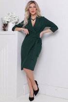 Элегантное праздничное платье длиной maxi, выполнено из эластичного трикотажного полотна. Перед и спинка целые, по спинке две вертикальные вытачки. По низу платья фигурная вставка из прозрачной отделочной ткани сетка с вышивкой. V-образный вырез горловины переда и горловина спинки обработаны обтачками. Рукав втачной, прямой длиной 3/4. Длина рукава от плечевой точки в 48 р-ре – 43 см. в 58 р-ре – 45 см., ширина рукава по низу в 48 р-ре – 27 см. в 58 р-ре – 34 см. Платье без застежек и подклада. Длина изделия по спинке в 48 р-ре – 127 см. в 58 р-ре – 134 см.