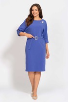 Платье женское, полуприлегающего силуэта, со слегка спущенным плечом. По переду в области талии драпировка, переходящая в завязывающийся пояс. Горловина округлой формы. Спинка со средним швом, в котором сверху потайная молния, снизу разрез, а так же вертикально направленные талиевые вытачки.