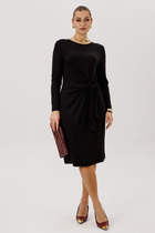 Платье женское, полуприлегающего силуэта, покроя спущенное плечо, с двубортной застежкой на запАх. На переде и спинке горизонтальная кокетка, по спинке средний шов. Горловина оформлена воротником пиджачного типа.