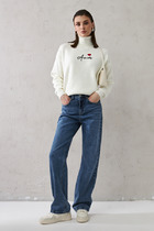 Лиф прилегающего силуэта, выполнен из трикотажного полотна. Горловина с притачным воротником-стойкой. Застежка центральная на тесьму-молнию с притачными планками до линии груди. Рукава втачные длинные. Для комфорта и регуляции размера по талии обработана резинка. Юбка А-силуэта с боковыми наклонными карманами, выполнена из матовой тафты. В комплекте прилагается съемный ремень.
