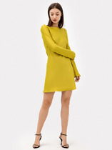 Платье полуприлегающего силуэта, отрезное по талии, выполнено из струящейся ткани с матовым блеском. V-образный вырез горловины. Спереди лифа обработан декоративный узел. Рукава короткие цельнокроеные. Спинка лифа со средним швом, по линии талии для комфорта обработана резинка. Крой юбки по косой.