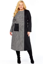 Платье полуприлегающего силуэта, расширенное к низу, длиной макси. По спинке платье отрезное ниже линии талии. Пояс спинки с частично вставленной резинкой, что обеспечивает дополнительное прилегание в области талии. Юбка спинки со средним швом. В среднем шве спинки вставлена потайная тесьма-«молния». Перед с притачным фигурным поясом по талии, на котором по центру выполнена сборка. Лиф переда выполнен на запах с мягкими односторонними складками. Лиф переда с цельнокроеными завязками по горловине. Юбка переда с рельефом с левой стороны, в котором обработан высокий разрез.