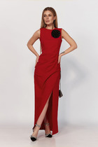 Платье женское предназначено для повседневной носки. Платье женское расширенное к низу, длинное. Перед с отрезной кокеткой, с двумя отрезными бочками, с двумя конструктивными подрезами внизу. Центральная часть переда с 8-ю декоративными складками. В швах соединения бочков с центральной частью переда обработаны карманы. Спинка со средним швом, с двумя декоративными конструктивными подрезами внизу от боковых швов. Горловина круглая, обтачная, без воротника. Рукав втачной, короткий, одно шовный. Ширина складки переда 1,5 см. Платье с плечевыми накладками. Длина спинки 133 см. Длина рукава 22 см