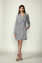 Платье женское, предназначено для повседневной носки. Платье женское, прямого силуэта, свободного кроя, длиной ниже колена. Перед с 2-мя нагрудными выточками, с 2-мя накладными карманами на уровне линии бёдер, левый с настрочной аппликацией. Спинка со средним швом, заканчивающийся разрезом. Горловина круглая, обточная, без воротника, по переду с разрезом, с вточной металлической молнией. рукав вточной, одно шовный, длиной 7/8. Платье без плечевых накладок. Длина спинки 100 см, длина рукава 49 см.