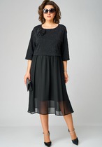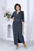 Двубортное платье из костюмной ткани на подкладке. Силуэт платья-слегка приталенный.По переду - нагрудные вытачки, по спинке -рельефы. Бочки, смещенные к переду, делают удобным расположение карманов в швах. Воротник - отложными лацканами пиджачного типа. Рукава - двухшовные, длинные, со шлицей и 2 пуговицами. Жакет застегивается на 2 основные пуговицы, 1 потайную, остальные пуговицы несут декоративный характер.