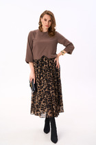Платье женское полуприлегающего силуэта с втачным рукавом. Перед платья с горизонтальным эластичным швом по талии. Верхняя часть с вытачками по линии груди, нижняя часть со складками в области талии и карманами что обеспечивает прекрасную посадку и подчеркивает фигуру. Рукав длиной 7/8. Высокие разрезы по бокам и переду платья добавляют удобства. В комплекте съемный ремень.