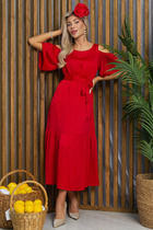 Платье женское полуприлегающего силуэта с втачным рукавом. Перед платья с горизонтальным швом по талии. Верхняя часть с вытачками по линии груди, нижняя часть со складками в области талии и карманами что обеспечивает прекрасную посадку и подчеркивает фигуру. Разрез по переду платья добавляет нотку игривости и удобства. В комплекте съемный ремень.