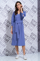 Платье женское из вельвета полуприлегающего силуэта с втачным рукавом. Перед платья с горизонтальным швом по талии. Верхняя часть с вытачками по линии груди, нижняя часть со складками в области талии и карманами что обеспечивает прекрасную посадку и подчеркивает фигуру. Разрез по переду платья добавляет нотку игривости и удобства. В комплекте съемный ремень.