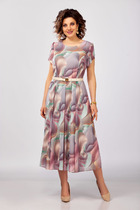 Платье женское прямого силуэта из трикотажного полотна длины миди, станет идеальным выбором для создания стильного и комфортного образа. Линия плеча спущена. Горловина v-образной формы с воротником-стойкой. По переду горизонтальный шов и боковые карманы с клапаном в нижней части. По спинке расположен центральный шов. Втачные рукава длиной 7/8 с отложной манжетой к низу добавляют легкости. В боковых швах обработаны разрезы.