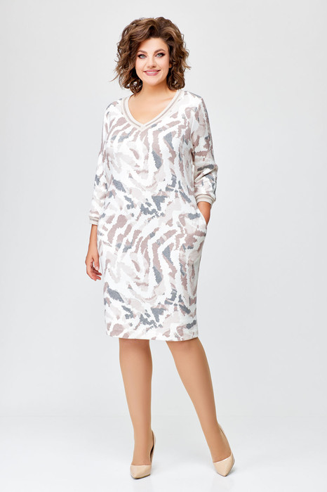 Платье Swallow 686.1 молочный+принт бежево-серый дизайн