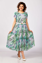 Платье из искусственного шёлка Х-образного силуэта, отрезное по линии талии.