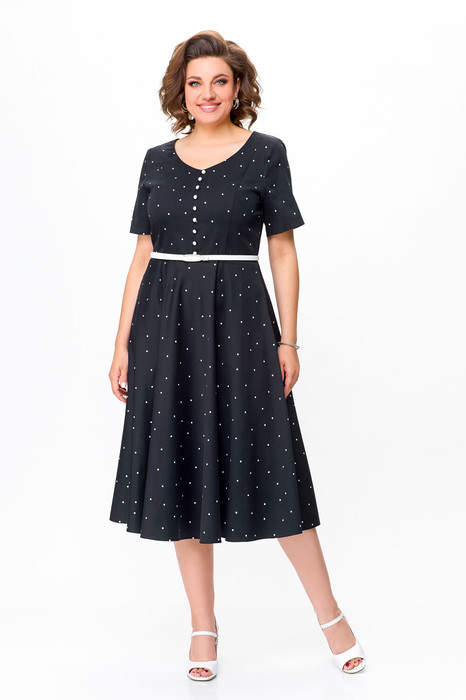Платье Swallow 719.1 черный+белый горох