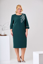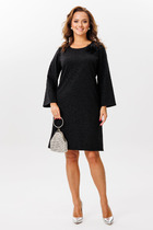 Платье полуприлегающего силуэта из мягкой шифоновой ткани на трикотажной подкладке. Полочка с отрезными рельефами, спинка с центральным швом и рельефами. Горловина округлой формы. Рукав втачной, формы «колокол», по окату с лёгкой сборкой, длиной 34 см.