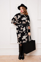 Платье из мягкой вискозной ткани, X-образного силуэта, отрезное по линии талии. Перед лифа с талиевыми вытачками, спинка лифа с центральным швом и талиевыми вытачками. Юбка расклешённая с карманами в боковых швах. Горловина округлой формы. Рукав втачной, короткий, формы «колокол».