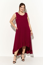 Серое платье из футера с лайкрой. Рукава ниже локтей, общая длина чуть выше середины бедра. Принт в виде розовой туфли, красная окантовка воротника и рукавов. Размеры от 44 до 56. Имеется возможность заказа товара в розницу.