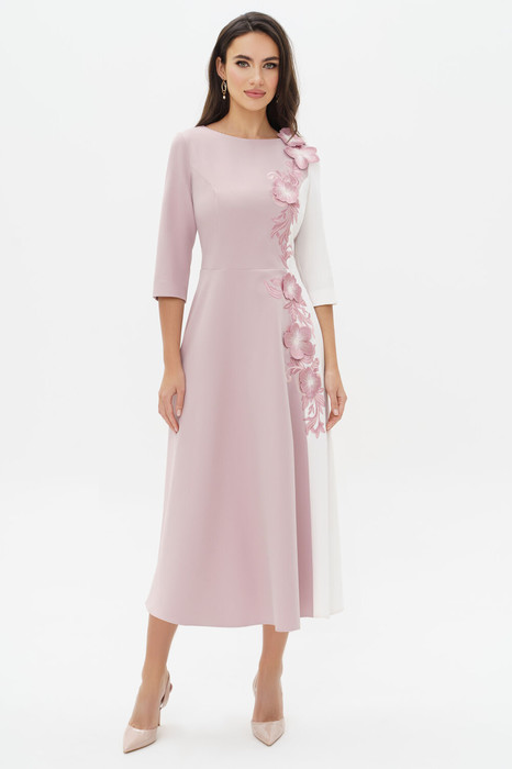 Изящное платье с цветочной вышивкой сочетает в себе легкость и женственность, основой для которого послужили две гармонирующие друг с другом ткани.