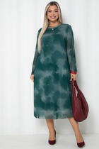 Платье женское полуприлегающего силуэта, отрезное по линии талии с притачным поясом, выполнено из костюмно-плательной ткани "лащенка". Перед и спинка на трикотажной, отлетной по низу, подкладке. Горловина, низа рукавов декорированы отделочной тесьмой, что придает платью нарядный вид.