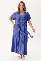Женственное платье прямого силуэта. Горловина оформлена отложным воротником на стойке. По переду планка с застежкой на петли и пуговицы. Длинный втачной рукав со сборкой по окату, по низу присборен на шпульную резинку. В боковых швах функциональные карманы. Низ оформлен притачным воланом. Пояс из основной ткани в комплекте.